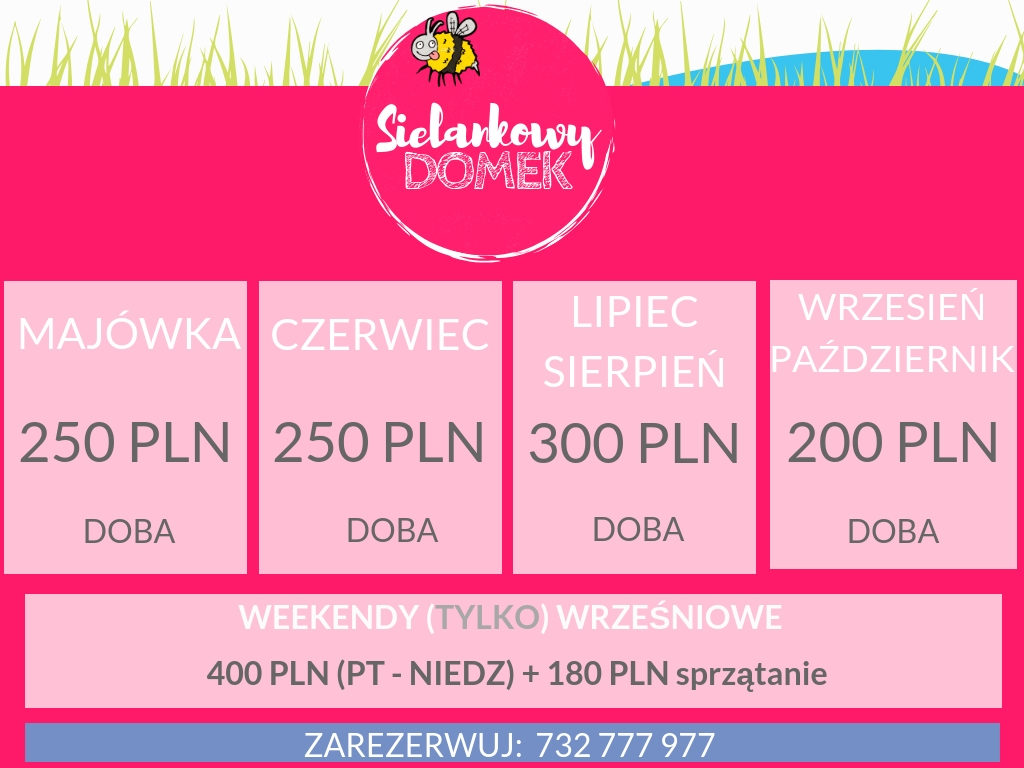 Wynajem – domek wynajmowany jest na minimum 7 dni w systemie tygodniowym [od soboty lub niedzieli/do soboty lub niedzieli]. Wyjątkiem jest miesiąc wrzesień, gdzie domek wynajmowany jest na weekendy.